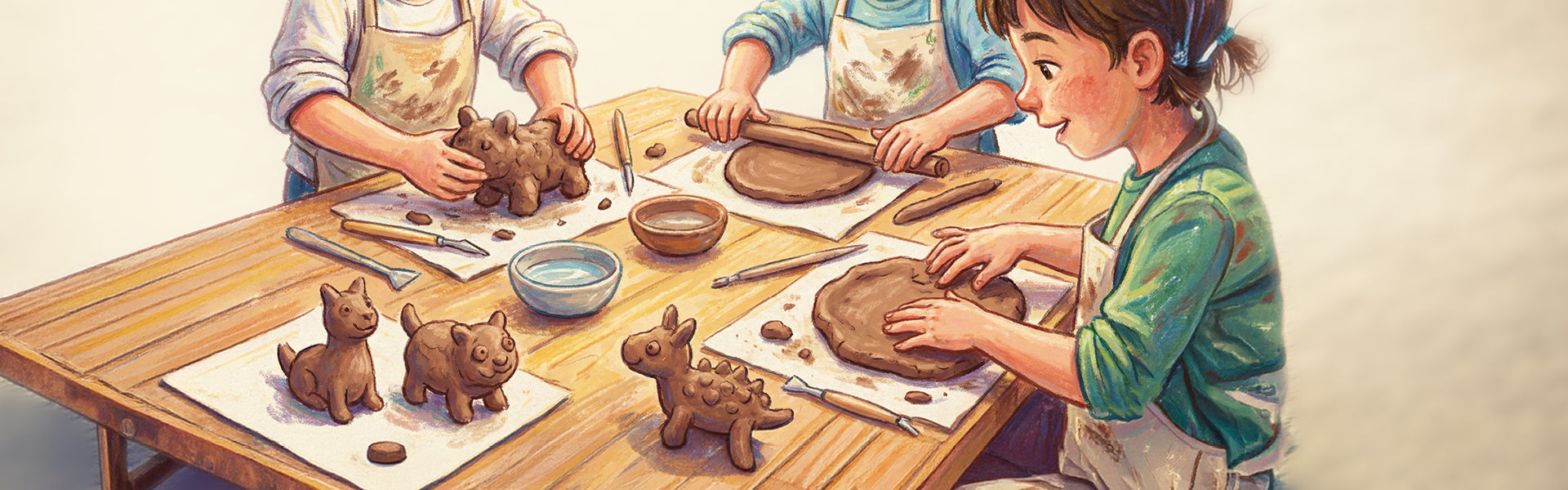 Kil ile yapılan üç boyutlu çalışmalar aracılığıyla çocukların el becerilerini, dokunsal algılarını ve hacimsel düşünme yetilerini geliştirmeyi amaçlayan bir görsel sanat atölyesidir. Çocuklar, malzeme ile doğrudan temas kurarak form üretmeyi, dönüştürmeyi ve ifade etmeyi deneyimler.