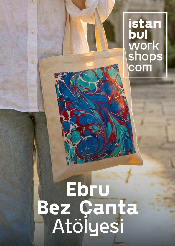Suya Renk Verin: Geleneksel Ebru ve Bez Çanta Tasarım Atölyesi Ebru'yu hep bilirsiniz ama hiç kendiniz denediniz mi? Suyun üzerine renk damlatmak, boya girdaplarının kendi desenini oluşturmasını izlemek ve sonra "bunu ben mi yaptım?" demek. Bu atölye tam olarak bu his için var. 2 saat boyunca geleneksel Ebru sanatını baştan sona deneyimliyorsunuz. Gerçek ebru fırçaları, taraklar ve doğal pigmentlerle çalışarak kendi özgün deseninizi oluşturuyorsunuz. Önce kağıt üzerinde pratik, sonra asıl tasarımınızı bez çantanıza aktarıyorsunuz. Ortaya çıkan şey tamamen size özel, aynısını bir daha kimse yapamaz. Daha önce hiç fırça tutmamış olmanız hiç önemli değil. Misafirlerimizin büyük çoğunluğu bunu ilk kez deniyor. Ebru'nun güzel tarafı şu: suyun doğası işin yarısını sizin yerinize yapıyor, ilk denemenizde bile sizi şaşırtacak sonuçlar çıkıyor. Çantanızın yanı sıra 2 adet ebrulu kartpostal da tasarlıyorsunuz. Çantanız kururken taze demlenmiş Türk çayı, kahve ve ev yapımı kurabiyeler eşliğinde keyifli bir mola sizi bekliyor. Maksimum 10 kişilik küçük gruplarla çalışıyoruz; samimi, rahat ve kişisel ilginin olduğu bir deneyim. Sonuçta elinizde rafta tozlanacak bir süs eşyası değil, günlük hayatta kullanacağınız ve insanların "bunu nereden aldın?" diye soracağı bir tasarım olacak.